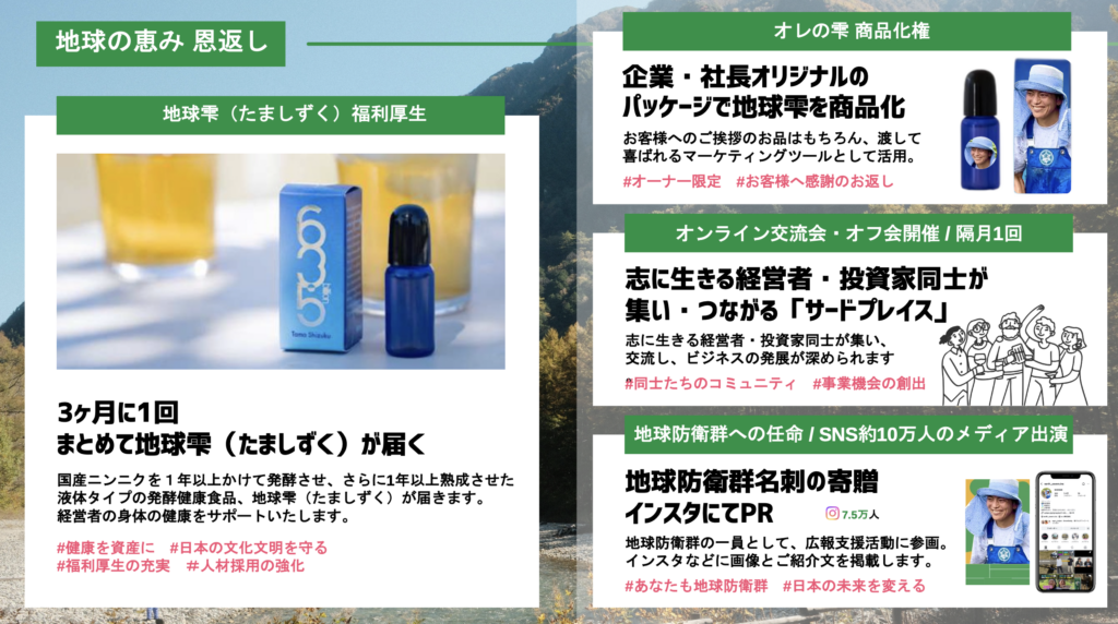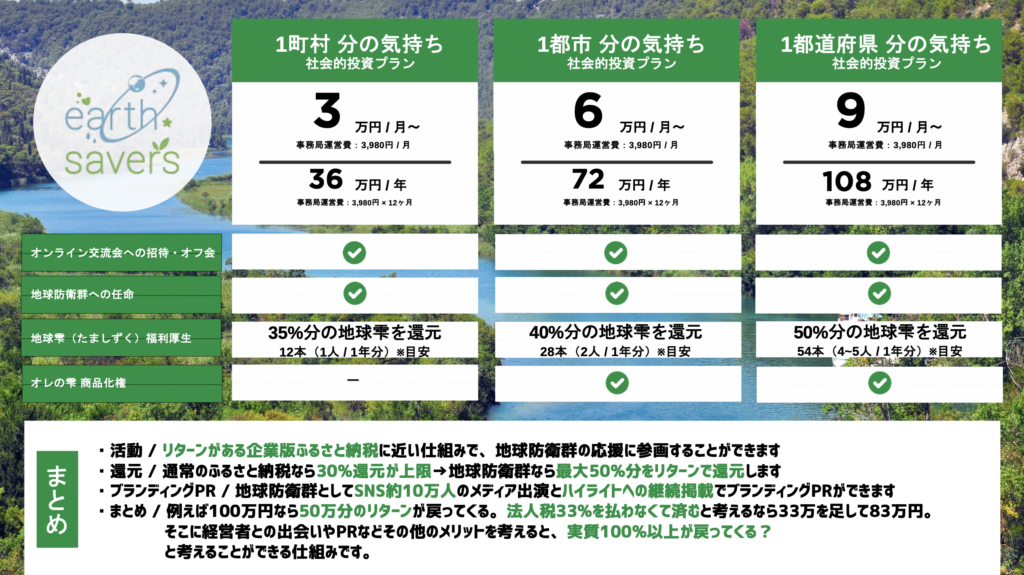 「会食1回分の投資で、日本の川と海を救う。」 みんなの力で、全国100箇所の主要河川を浄化し、子供たちの未来を守る「地球防衛群」になりませんか? あなたの投資は、最高品質の健康資産「地球雫」と、社会的信用となって還元されます。